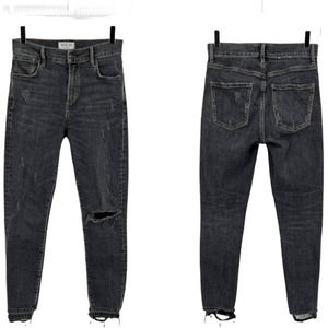 Agolde Gray High Rise Distressed Released Raw Hem Skinny Jeans Size 24