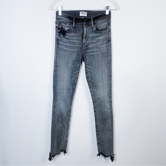 Agolde grey skinny jeans. Distressed hem. Has stretch.