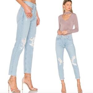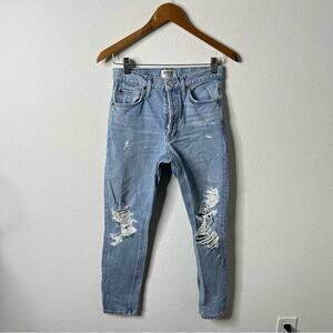 Agolde High Rise Distressed Light Wash Slim Jeans Womens Size 24