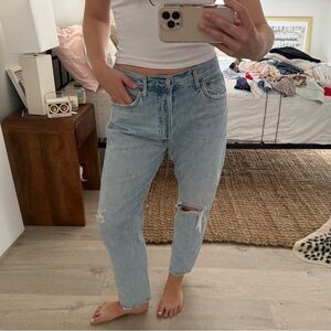 Agolde High Rise Light Wash Distressed Boyfriend Jeans