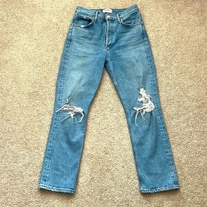 Agolde High Rise Riley Straight Leg Cropped Medium Wash Distressed Jeans Size 26