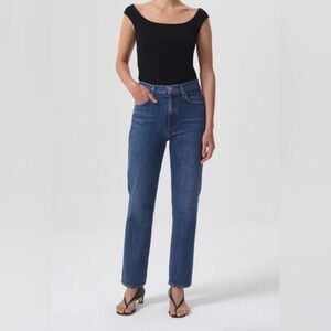 Agolde High Rise Stovepipe Straight Leg Denim Jeans in Aspire