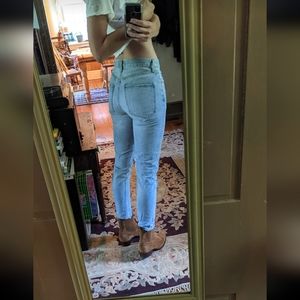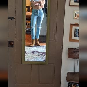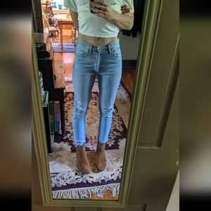 Rigid distressed mid-high rise skinnies from agolde! These are for sure on the small size of 26 being 100% cotton. Did not wear these out of the house practically new.