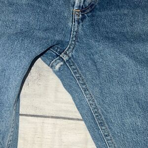 Jeans have additional distressing. Rip, distressing on the back. See all photos.