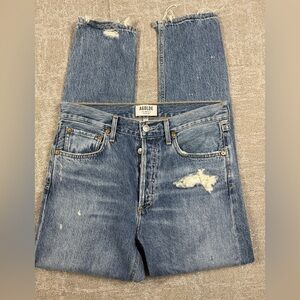 Agolde Jamie High Rise Distressed Button Fly Casual Womens Blue Jean Size 27