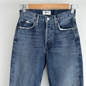Agolde Fen Jeans Womens 23 Blue Distressed High Rise Relaxed Taper Organic Denim