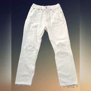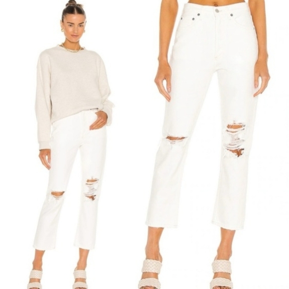 Agolde Jeans Size 29 "Riley" High Rise Straight Crop White Distressed Ripped