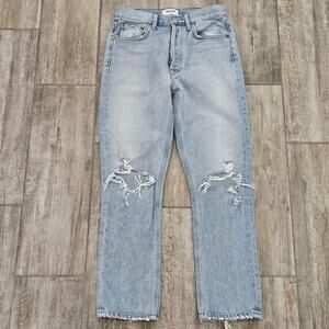 Agolde Jeans Women Size 25 Riley High Rise Crop Distressed Button Fly Light Wash