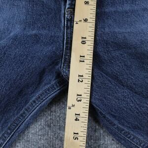 Gently worn with typical wash fade and light wear at the hems. No holes, stains, or fraying through. Fabric, seams, and button fly are intact and functional.