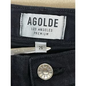 Agolde Jeans Womens 26 Black Nico High Rise Slim Fit Frayed Hem Button Fly