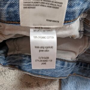 Gently Pre-Owned. Great condition. No flaws. Button Fly. Cotton. Distressed knees. Style #-A045E-1139