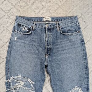 Agolde Jeans Womens 31 Blue Wander Fen High Rise Relaxed Taper Cotton Distressed