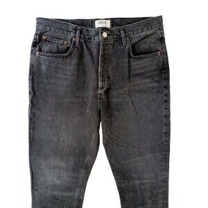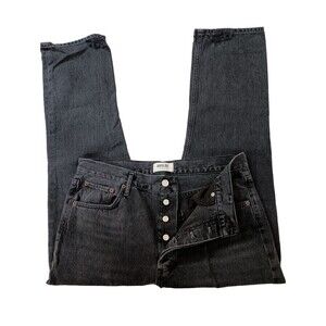 Agolde Jeans Womens 31 Riley Black Denim High Rise Crop Button Fly Dark Wash
