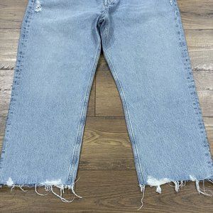 Agolde Jeans Womens 34 90s Crop Loose Fit Nerve Light Wash Raw Hem Button Fly