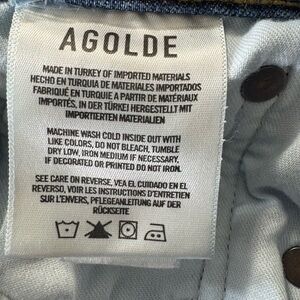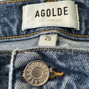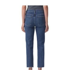 Agolde Kye Blue Straight Leg Jeans High-Rise Raw Hem. Organic, Classic Everyday.