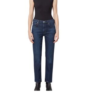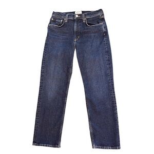 Agolde Kye Mid Rise Straight Ankle Crop Medium Dark Blue Denim Jeans in Size 27.