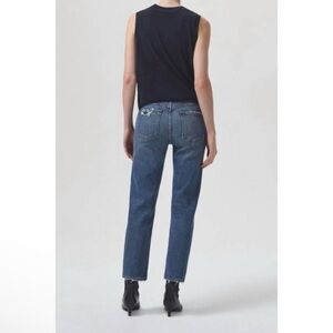 Agolde Kye Mid Rise Straight Crop Jean Distressed Stretch Denim Notion Wash 33
