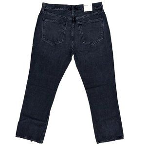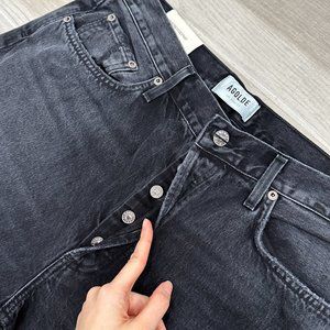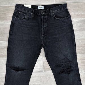 Agolde Lana Mid Rise Vintage Straight in Disorder Washed Black Distressed Jeans