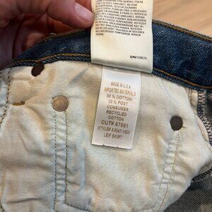 Blue cotton-blend denim with a straight silhouette.