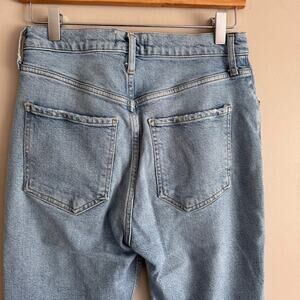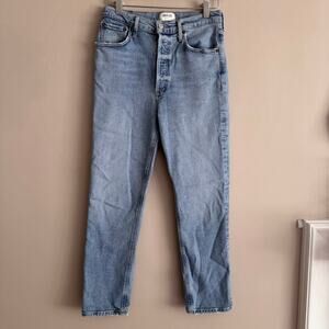 Classic straight leg jeans. Light blue wash. Timeless style.