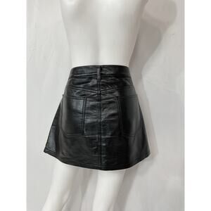 Agolde 'Liv' Black Leather Mini Skirt Size 29 (6-8): zip fly with button closure, 5-pocket design, smooth leather fabric.