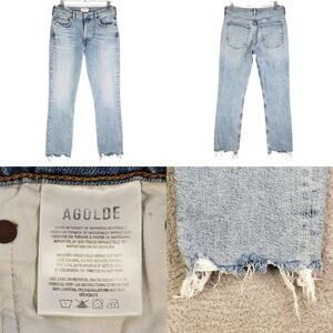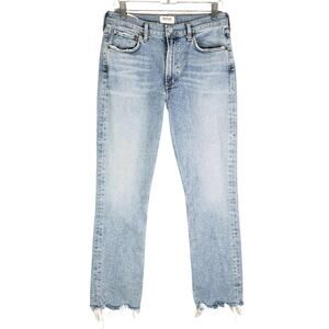 Agolde Merrel High Rise Straight Leg Jeans Blue Light Wash Fray Cotton Size 29