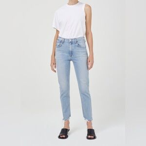 Tags: Agolde, light wash, jeans, denim, slim, straight leg, trendy, mid rise, frayed, classic, casual