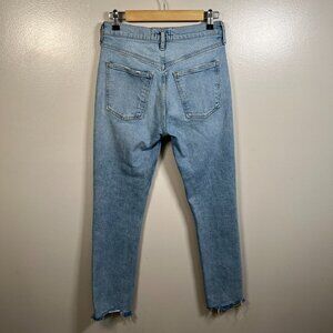 Agolde Merrel Mid-Rise Slim Straight Jeans Size 26 Light Wash Astray Frayed Hem