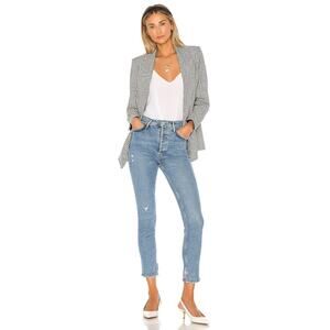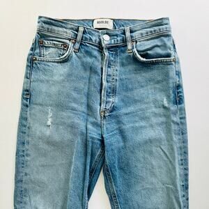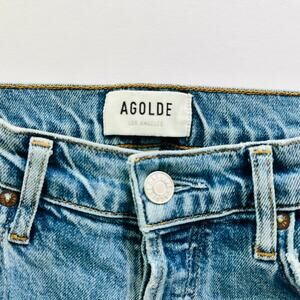 Agolde Nico High Rise Slim Jeans Light Wash Blue Size 25 Hem Slit Button Fly