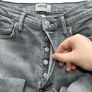 Agolde Nico Women’s High Rise Skinny Jeans Raw Hem Gray Size 26