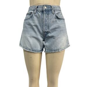 Agolde 'Parker' Blue Cotton Long Short Size 27: button fly, 5-pocket pocket styling, light whiskering detail, structured denim.