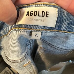 Agolde Parker Denim Distressed Blue Jean Shorts Size 25 Boho Festival Light Wash