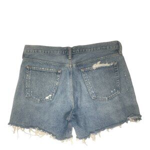 Agolde Parker Long Cut Off Jean Shorts Size 32, In Heatwave Wash, Blue Denim, Raw Frayed Hem, Cotton, Distressed