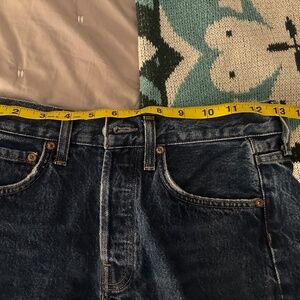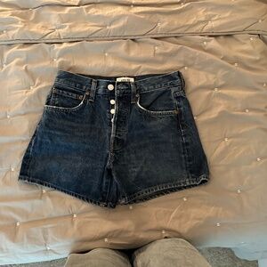 4 inch inseam. 10 inch rise. 13 inch waist. (All measurements taken flat, of course.) Excellent condition! Product photo is just to show how the shorts look on a body; pretty sure that's not the actual wash I bought.