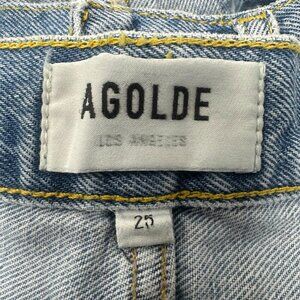 Agolde Parker Vintage Cut Off Jean Shorts Size 25, In Swapmeet Wash, Blue Denim, Distressed, Raw Frayed Hem, Cotton
