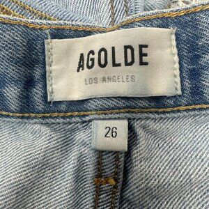 Agolde Parker Vintage Cut Off Jean Shorts Size 26, In Swapmeet Wash, Blue Denim, Distressed, Raw Frayed Hem, Cotton