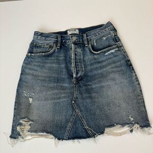 Agolde Quinn High Rise Medium Wash Distressed Mini Skirt size 25 m1