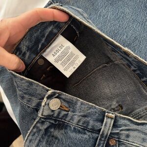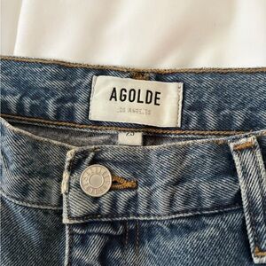 Chic straight leg jeans by Agolde. Dark blue hue. Stylish and versatile.