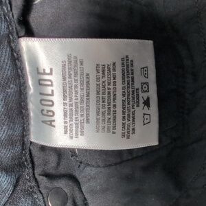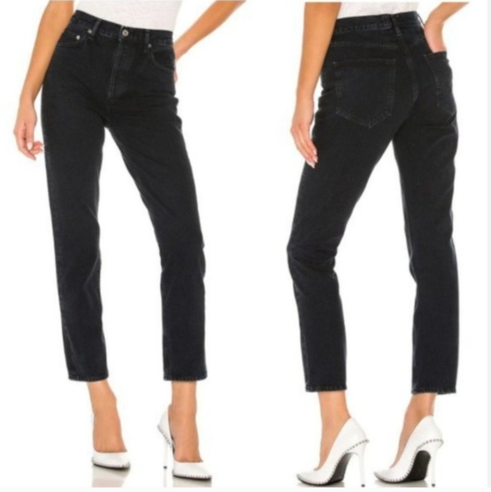 size 28 Remy high rise straight leg jeans from agolde. good condition. color satellite. button fly. waist 14". rise 11". inseam 27".