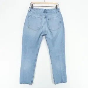 Classic straight leg jeans. Light blue wash. Timeless style.