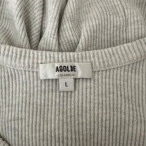 Agolde Rib Knit Top Maya Scoop Neckline Long Sleeve Minimalist Grey Sz L