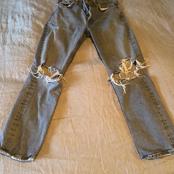 Agolde Riley distressed knees. These are a high rise. Super comfy jeans. They stretch but do not get baggy.