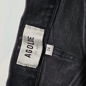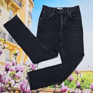 Agolde Riley Crop 5 Button Black Denim High Waisted Jeans Size 24