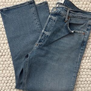 Picture this: Slip into AGOLDE's High Rise Straight Crop in - a chic light wash denim with a hint of distress. Now, imagine the perfect day out with your girls, lunching and shopping, all in style!