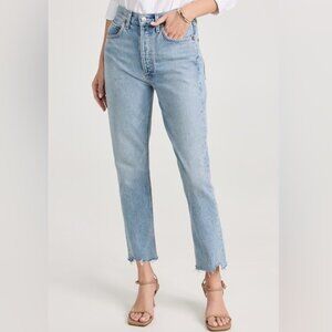 Agolde Riley Crop Jeans 24 Raw Hem Stretch Denim Button Fly