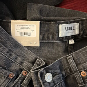 Size 31 NWT Agolde Riley High Rise Crop in Edit (Black color). Waist 16.5”, rise 12”, inseam 27”