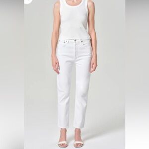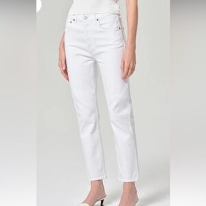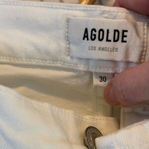 Agolde Riley high rise crop jeans in white. Excellent condition. Hidden button fly detail. Waist 30. (H)
