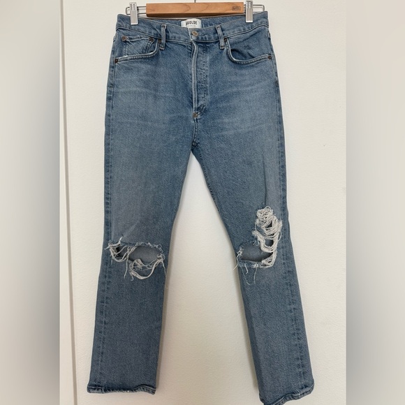 Agolde Riley High Rise Light Blue Ripped Jeans