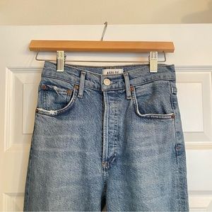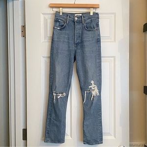Agolde Riley High Rise Ripped Knee Revolve Straight Crop Distressed Jean Size 23