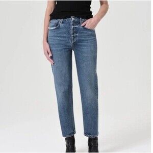 Agolde Riley High Rise Straight Ankle Crop Jeans Blue Denim Organic Cotton 30